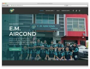 Website company profile untuk EM Aircond, sebuah syarikat yang menawarkan perkhidmatan dalam bidang Aircond.