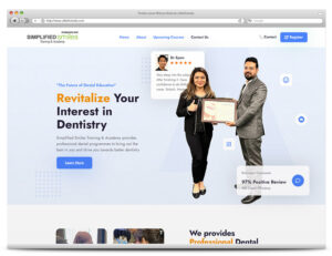 Website jenis Company Profile untuk syarikat Simplified Smiles Academy. Sebuah syarikat yang menawarkan perkhidmatan Latihan kepada doktor gigi.