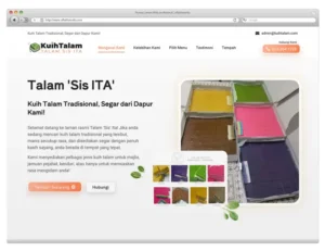 Website jenis Company Profile untuk kuihtalam.com – laman rasmi jenama Talam ‘Sis’ Ita yang terkenal dengan kuih talam tradisional, lembut, manis secukup rasa dan disediakan segar dari dapur. Laman web ini dibangunkan sebagai professional business website untuk memudahkan pelanggan membuat tempahan, melihat senarai produk, serta mendapatkan maklumat lengkap tentang perkhidmatan yang ditawarkan. Reka bentuk laman memerlukan clean and modern web design dengan paparan yang fokus kepada mobile-friendly website design. Sesuai untuk inisiatif responsive web design for local brands dalam industri makanan tradisional di Malaysia.